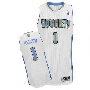 Men's Adidas Denver Nuggets #1 Jameer Nelson Authentic White Home NBA Jersey