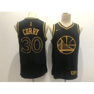 Men's Golden State Warriors #30 Stephen Curry Black Gold Stitched Jersey