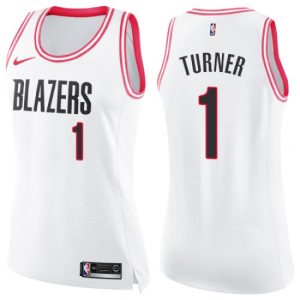 Women's Nike Portland Trail Blazers #1 Evan Turner Swingman White/Pink Fashion NBA Jersey