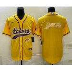Men’s Los Angeles Lakers Yellow Big Logo Cool Base Stitched Baseball Jersey
